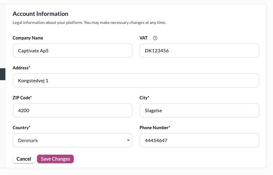 Each Nexa account will have a legal owner. This is registered in the Account Information.
